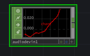 オペレーター一覧から「CHOP」→「Math」をクリック、「audiodevin1」と「math1」をワイヤー接続すると、同じ値が「Math」にも表示されます。